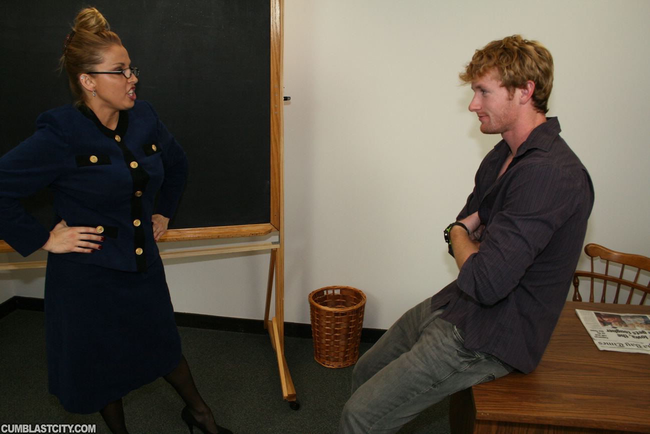 Jimmy Longwood gets in trouble for getting caught jerking his cock in front of everyone. Mrs. Starr makes him stay after class so she can scold him, but the milf gets curious and decides to conduct an experiment, to see is she can make him jizz.
