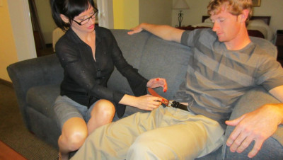 Angie get really stressed out from her work. She called for someone, a college guy with loads of cum and likes handjob. Shaggy is the perfect guy to relieve Angie's stress. She jack off Shaggy till she get lots of cum on her face