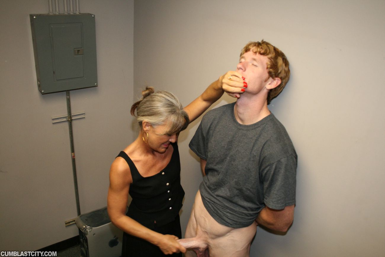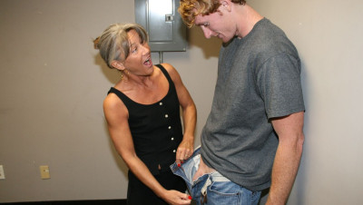 Sexy cougar Leilani Lei spots Mikey and wants to make him nut since she's heard that his balls are the size of softballs. When Mikey pulls out his pud, the granny is shocked at the immense size. Leilani tugs at his cock hoping for a large cumload.