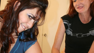 Jezebel stops over Mrs. Waters' place to watch a movie when a steamy porn flick comes on instead. Since their hubbys are gone, the two milfs start masturbating together. Just as their twats are being tweaked the paper boy throws one through the window. They decide to punish him.