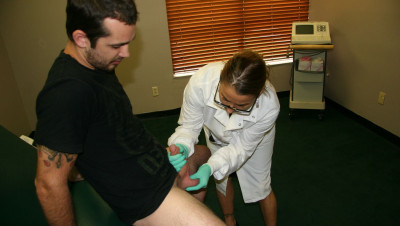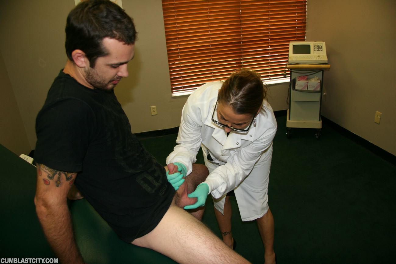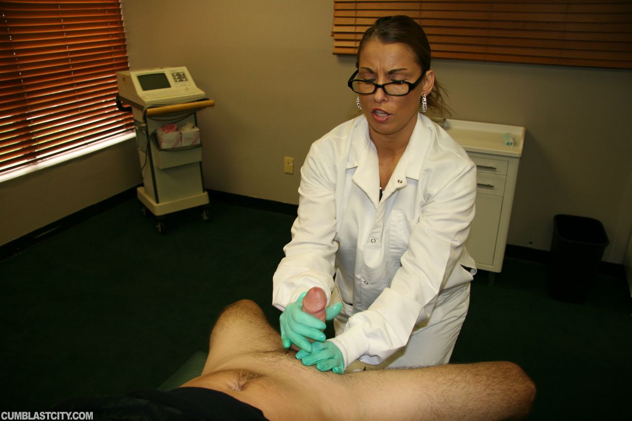 Billy is frightened by the amount of sperm he can spurt. After months if hesitation he finally visits the hospital. Enter Dr. Starr, a Urologist. Dr. Starr begins to examine Billy when he accidentally gets erect. Dr. Starr, curious at his problem, decides to stroke it. Billy immediately unloads a monster load on her face and huge boobs.
