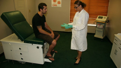 Billy is frightened by the amount of sperm he can spurt. After months if hesitation he finally visits the hospital. Enter Dr. Starr, a Urologist. Dr. Starr begins to examine Billy when he accidentally gets erect. Dr. Starr, curious at his problem, decides to stroke it. Billy immediately unloads a monster load on her face and huge boobs.