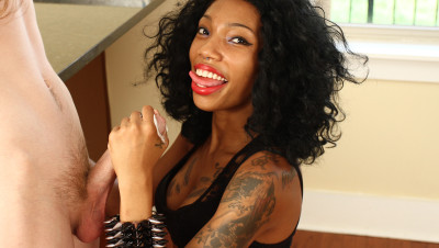Amani is a very cute ebony with sexy body, that loves jerking cocks. This sexy lady strokes Mr Johnson's big bonner and she has no intention to stop before he explodes with jizz. Of course he won't disappoint her, so he ejaculates on her sexy body.