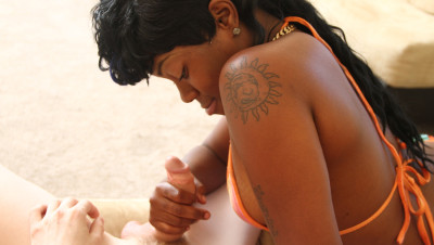 Queenie is a horny ebony with nice tits. This girl seems to love jerking pricks, and you can easily see how much she enjoys jacking Billy's big cock. What she doesn't know is that he hasn't ejaculated for weeks, and this will cause a major cumshot.
