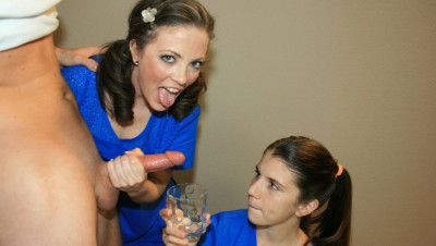 College nurses in training Sofia and JC check Mr. Johnsons sperm count. The teen nurses clean him up and begin the process of milking his cock dry. Sofia works his cock hard, while JC stands by ready to collect his salty cum for analysis.